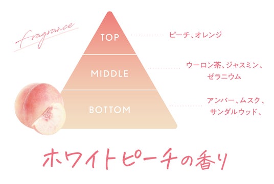 みずみずしい白桃をイメージした、甘すぎない、けれど心に残る「ホワイトピーチの香り」。