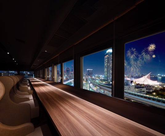 目の前に神戸の夜景が広がる贅沢なカウンター席