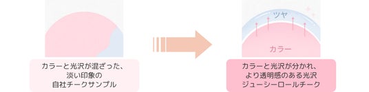 カラーとツヤが分かれたクリアなツヤ膜で、チーク史上最高なツヤ肌へと導きます。