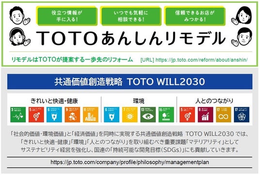 TOTOは、本商品を含む、「きれいと快適・健康」「環境」を両立するTOTOらしい商品を「サステナブルプロダクツ」と位置付け、これらの商品を普及させることによって、地球環境に配慮した、豊かで快適な社会の実現に貢献していきます。