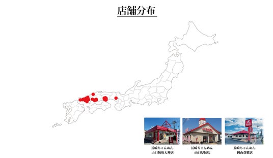 「長崎ちゃんめん」について長崎ちゃんめんは、1971年に山口県小野田市に第1号店がオープンし、山口、広島、岡山の中国地方を中心に出店してまいりました。“長崎ちゃんめん”というネーミングの由来は、【ちゃんぽん】と【ラーメン】の良い部分を活かした特徴にあります。ちゃんぽん特有の具だくさんの食材と白湯スープに蒸し麺ではなく、ラーメン特有のコシのある生麺を使用しているのが特徴です。
