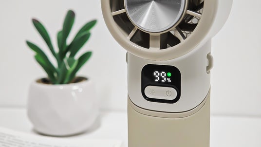 2.触れた瞬間ひんやりクールダウン。扇風機の羽は隠れており、バッテリー残量が一目で分かる!風速表示・充電状態確認も。