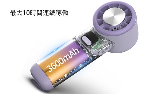 長時間のお出かけや屋外イベントでも大活躍!3600mAhの大容量バッテリーを搭載し、最大10時間の連続使用が可能です。頻繁に充電する手間を減らし、1日中快適な涼しさをキープできます。