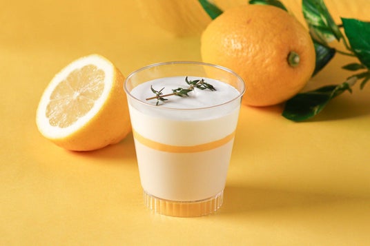 きび砂糖を使ったコクのあるミルクパンナコッタに、 レモンクリームと生クリームを重ねた、なめらかで すっきりとした味わいのカップデザートです。