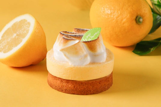 さくさくのアーモンドタルトに、酸味のあるライムクリームとレモンムースを重ね、レモン風味のメレンゲを絞ったケーキです。