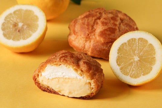 生クリームとカスタードクリームの間に 甘酸っぱいレモンクリームの層を忍ばせた、 たっぷりクリームの爽やかなシュークリームです。