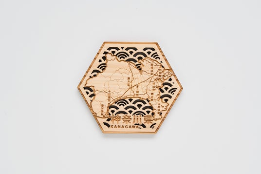 国産のヒノキを使用。良い香りが漂い、日本を感じていただけるシリーズのコースター。ヒノキの木目の美しさと温もりを感じつつ、詳細に刻印された地図を楽しめるデザインになっています。神奈川県エリアをモチーフにしたデザインは、新商品となります。