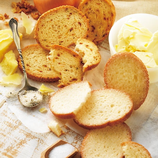北海道産のこだわりのバターを使用し、風味豊かに仕上げたラスク。チーズとオニオンのコクのある奥深い味わいの[チーズ&オニオン]と、香り立つバターの風味を贅沢に味わえる[シュガー]。2つのおいしさを一度にお楽しみいただける詰め合わせです。