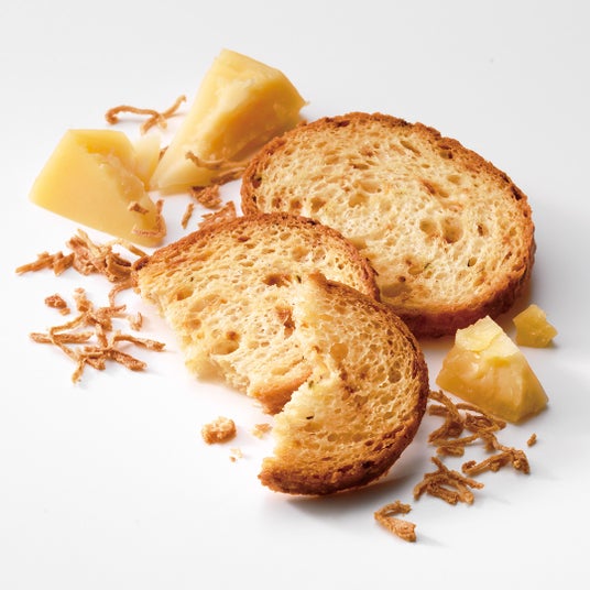 ラスクのために焼き上げたパンに、澄ましバターをミスト状にしてしみ込ませ、グラニュー糖をふりかけました。素材にこだわった、さくさくの食感と香り立つバターの風味を贅沢に味わえるラスクです。