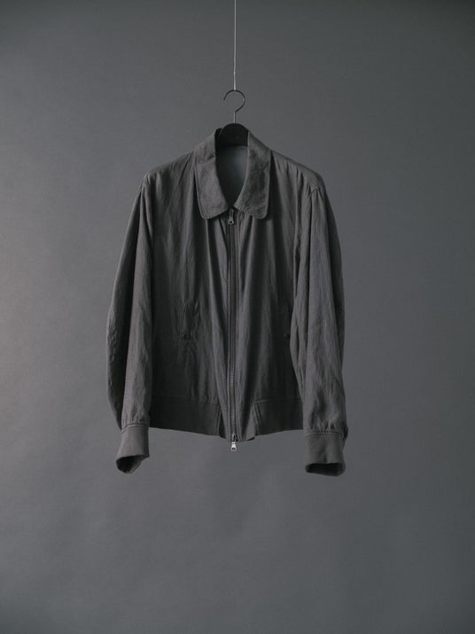 白、黒、グレーといった無彩色で染めたリネン素材を用いて、コート、ジャケット、ブルゾン、パンツ、カットソーを展開いたします。