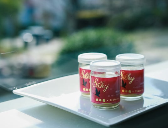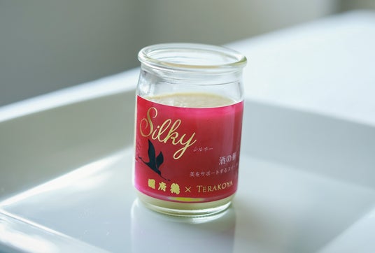 70年の歴史を刻んできた武蔵野のフレンチレストラン「TERAKOYA」と、1860年創業の野口酒造店がコラボレーションした「酒の華スイーツSilky(シルキー)」。酒を醸した際に生まれる酒粕とオリーブシロップが出会うことで生まれた、華やかな香りとなめらかな口溶けが楽しめる新しい感覚のクリーミーなムースです。