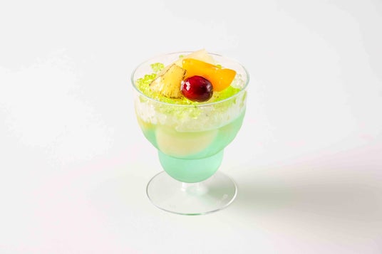 暑い季節にぴったりの、清涼感あふれるミントゼリーをご用意しました。ペパーミントのリキュールで仕立てたゼリーに、バレンシアオレンジと国産白桃のコンポートを加え、涼しげな2色のクラッシュゼリー、洋ナシ、パイナップル、アプリコット、クランベリーで美しく仕上げました。