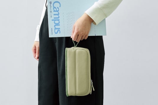 近年若年層を中心に「タイパ(タイムパフォーマンス)」が重視される中、集中力の維持を目的としたタイマー学習や、すきま時間を活用したオンライン学習の需要がさらに高まると考えています。今回発売する「ツールペンケース<カバコ>(ハーフポケット)」は、ファスナーを開くと折り返し部分にスマホやタイマーを省スペースに設置することができます。移動先など限られたスペースでの学習環境でも、スマホやタイマーの置き場を確保できます。また、仕切りやポケットで中身を整理しながら収容できるので、文具だけでなく、スマホの充電器やイヤホンなどのガジェットツールも一式まとめて持ち運べます。