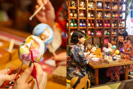 自分だけのオリジナルだるまが作れる「Decoだるま工房」。カラフルなペイントやデコレーションで、世界に一つのだるまを完成させられます。かわいいだるまと一緒に写真を撮るのもおすすめです。