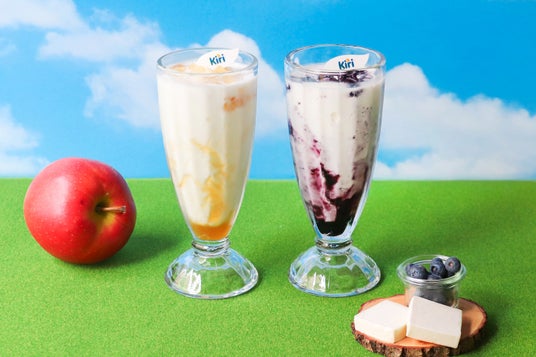 アップルパイとのペアリングにぴったりな、爽やかな酸味とまろやかさのバランスが魅力の『キリ クリームチーズ使用 サマーフラッペ ~ブルーベリー~ 』、「フジりんご」味のソースを贅沢に使用し、角切りりんごの食感がアクセントの『キリ クリームチーズ使用 サマーフラッペ ~フジりんご~』。