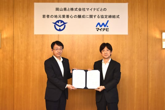 株式会社マイナビ(本社:東京都千代田区、代表取締役 社長執行役員:土屋芳明)は、岡山県(知事:伊原木隆太)と「若者の地元愛着心の醸成に関する連携協定」を締結しました。当社が自治体と高校生等を対象にした人材還流に関する協定を締結するのは三重県に続いて2県目となります。それに伴い、6月3日(火)に岡山県庁(岡山県岡山市)にて協定締結式を行いました。