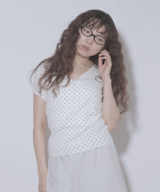 今年トレンドのドット、切り替え部分にレースをつけてフェミニンなデザインに。