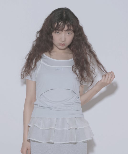 シアーのスカートとカーゴパンツがレイヤードになったアイテム。