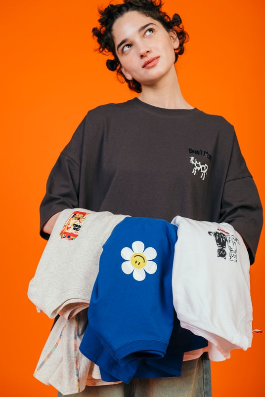展開アイテムは、Tシャツ、パターンシャツ、デニムパンツ、巾着型ショルダーバッグ、バケットハット、チャームキーホルダーなど全11型。大胆なカラーリングやユニークなモチーフを取り入れたデザインで、日常に“ワクワク”と“彩り”をプラスします。