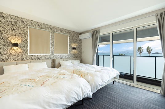 館内は、モダンで洗練されたインテリアで統一され、清潔感と居心地の良さを兼ね備えています。広々としたリビングには、自然光が降り注ぐ大きな窓があり、明るく開放的な空間でゆったりと過ごすことができます。そして寝室から見える海はとても鮮やかで、溜まった疲れを癒してくれます。