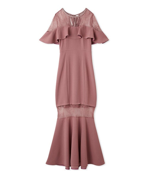 シアーデコルテマーメイドドレス優雅なシアー素材とドラマティックなフリルディテールが魅せる マーメードシルエットのカットソードレスです。フェミニンな抜け感を加えてドレッシーに仕上げました。