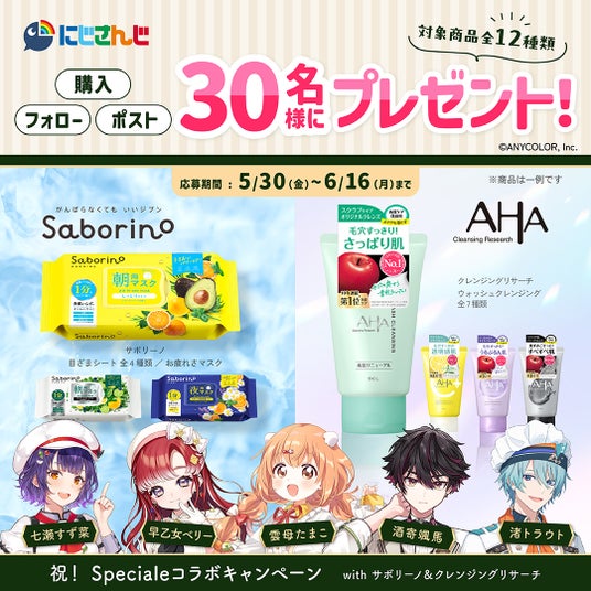 VTuber/バーチャルライバーグループ「にじさんじ」と「サボリーノ」&「クレンジングリサーチ」のコラボが決定!Speciale(すぺしゃーれ)の5名とのライブ配信を6/9(月)20:00より実施。