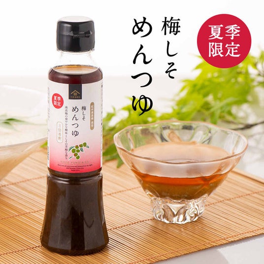 【新登場!】梅しそめんつゆ青じそのさわやかな香りをそこなわないように仕上げました。製造現場で国産の生の大葉を粗めにカットすることで、みずみずしい香りが広がります。
