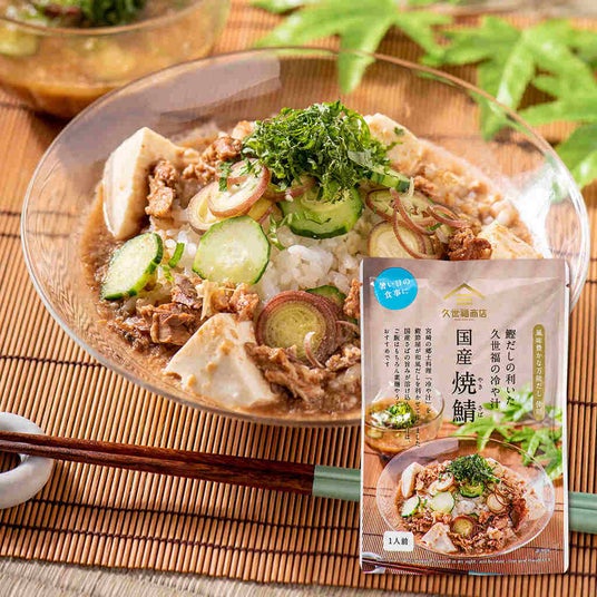 鰹だしの利いた久世福の冷や汁 国産焼鯖夏の暑い日に召し上がりいただきたい、鯖と味噌の濃厚なコクが広がる冷や汁です。味噌ベースの汁に鯖の濃い旨みが最後の一滴まで溶け込んでおり、奥深いおいしさの冷や汁が召し上がりいただけます。