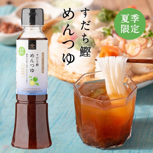 すだち鰹めんつゆ暑い日にぴったり!すだちが爽やかに香る、風味豊かなめんつゆです。すだちは徳島県産のものを使用し、清涼感のある香りとすっきりとした酸味が楽しめます。