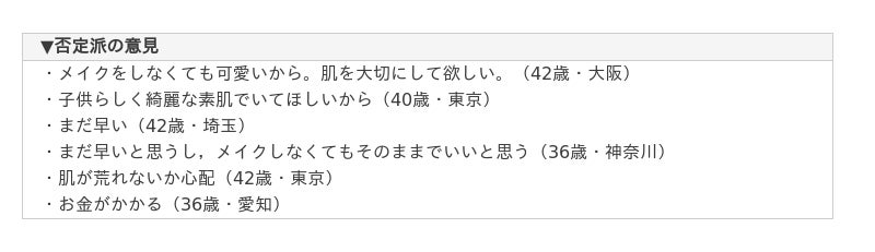 ◎【子のメイク「肯定的」が約8割】一昔前に比べ、子どものメイクに対する親の意識が変化してきている兆しか◎否定的な意見も2割と一定数存在(22.2%)