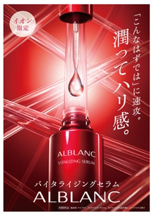 イオンは、イオンリテール株式会社(以下、イオンリテール)と花王株式会社(以下、花王) との共同企画で、「潤白美肌」※1)をめざすカウンセリングブランド「ALBLANC(アルブラン)」の美容液「アルブラン バイタライジングセラム」(医薬部外品)を8月12日(火)、「イオン」「イオンスタイル」全国約260店舗※2)と「イオンスタイルオンライン」にて発売します。