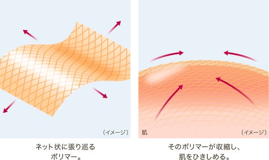 ●製剤中に含まれるポリマーが肌の上にネット上に広がり、互いに収縮してひきしまります。