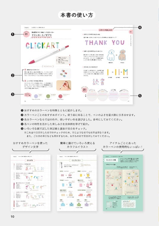 本書は、文房具を熟知し手帳デコのエキスパートである著者が、人気カラーペンそれぞれの特徴を紹介し、使い方のコツをたっぷり紹介した1冊です。