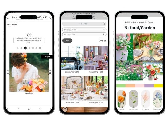 スワイプ診断で“理想のウエディングフラワー”を見つけ、「タイパ」と「自分らしさ」を両立。年間2.5万組を手掛けるHIBIYA KADAN WEDDINGがWEBカウンセリング『Favori』を公開。