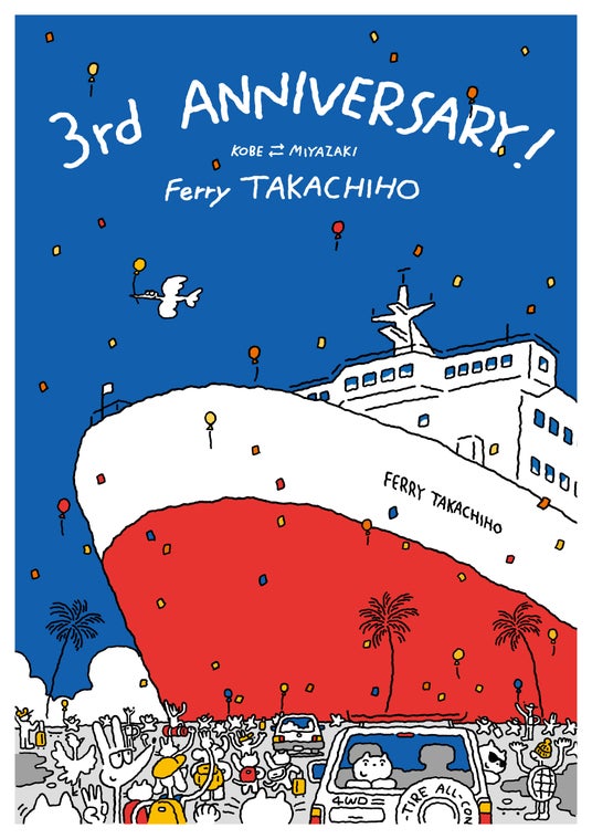 就航3周年を祝った「フェリーたかちほ」の描き下ろしイラスト