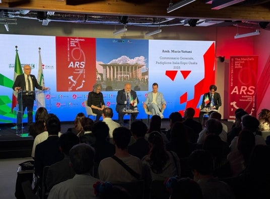 大阪・関西万博のイタリアパビリオンでは、マリオ・ヴァッターニ大使(2025年大阪・関西万博イタリア政府代表)が尽力して、毎週イタリアの各州を魅力をPRしている。そんなすばらしい機会にマルケ州の芸術・文化・職人技を発信できることはとても喜ばしいことだ。