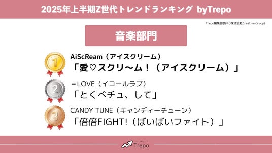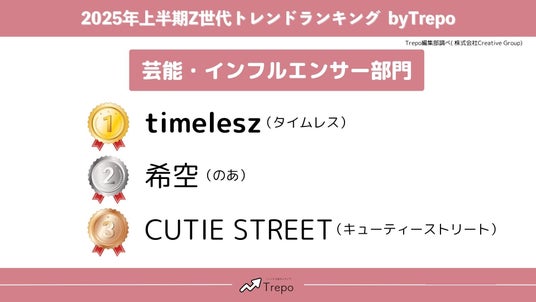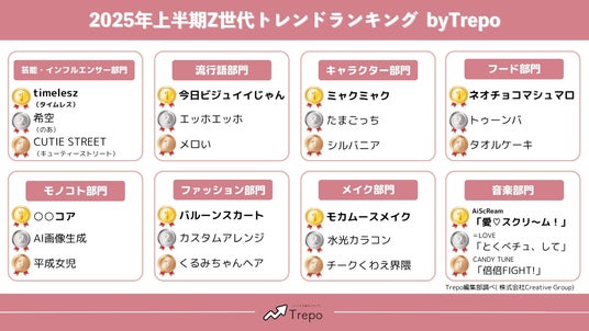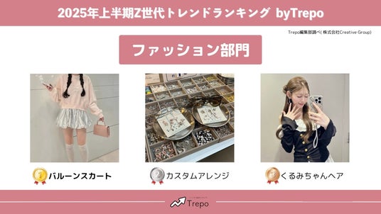株式会社Creative Group(本社:東京都千代田区、代表取締役:中原一真)が運営する10代~20代女性向けトレンドメディア『Trepo(トレポ)』は、10代~20代の女性(Trepo girls)を対象に、2025年上半期のZ世代トレンド調査を行いました。WEBで実施したアンケート調査(以降「Trepo girls調査」)の結果をお知らせします。