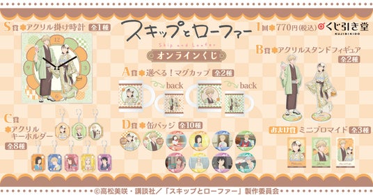 株式会社KADOKAWA(本社:東京都千代田区、取締役 代表執行役社長 CEO:夏野 剛、以下 KADOKAWA)は、運営するオンラインくじサービス「くじ引き堂」において、「スキップとローファー」の豪華賞品が手に入る<TVアニメ『スキップとローファー』オンラインくじ>を、2025年6月17日(火)17時より販売します。