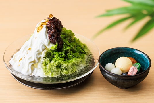 抹茶と粒あんという日本の伝統的なかき氷に生クリームと練乳のエスプーマーを添えることで、斬新な味の変化をお楽しみいただけます。