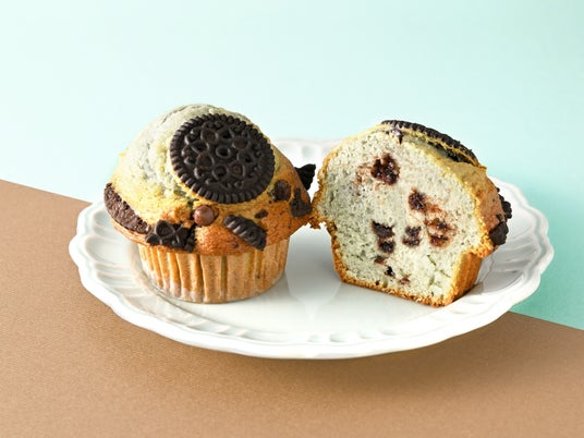 爽やかなミント生地のマフィンにチョコチップを練りこみ、サクサク食感のココアビスケットをトッピング!冷やしてもおいしい、暑い季節にぴったりのマフィンです。