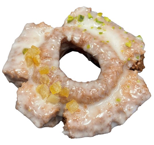 爽やかレモングレーズファッション 240円 地中海産生レモンの濃縮液をぎゅっと詰め込んだ甘酸っぱくて爽やかなグレーズを使用した夏限定のオールドファッションです。