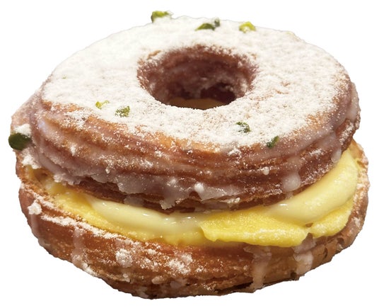 「瀬戸内レモンフロマージュクロワッサン」は、層を重ねたクロワッサンドーナツにレモングレーズをコーティングし、瀬戸内レモンが香るクリームとレモンフロマージュクリームをサンドした夏のリッチなクロワッサンドーナツです。