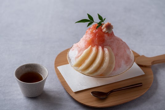 毎年好評な旬の国産桃をふんだんに使用した贅沢なかき氷。上品な甘さの白餡と桃のソースをたっぷりとかけたかき氷の中に、桃が香るミルクシロップが隠れています。桃の瑞々しい食感や甘く芳醇な香りと、食べ進むにつれ変化していく味わいをじっくりとご堪能いただけます。