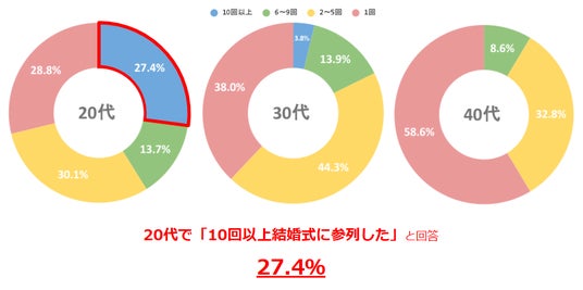 - 20代の約3割が、直近5年以内に「10回以上結婚式に参列した」と回答