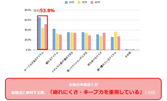 また20代は写真映えや盛れるかどうかという項目も上位に位置。写真撮影をしてそれをSNSにアップすることも多いでしょうから、自分にとってベストな状態で参列したい方も多そうですね。