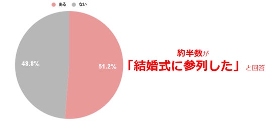 全体の約半数が直近5年以内に結婚式へ参列したと回答。この5年はコロナ禍であったにも関わらず、2人に1人は結婚式に参列したという結果になりました。