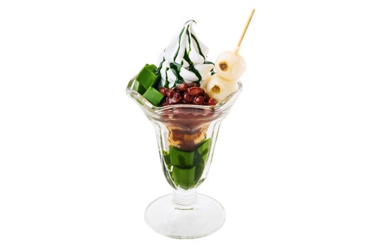 「京抹茶パフェ」は、祇園辻利の宇治抹茶をふんだんに使用した、和の魅力が詰まったパフェメニュー。店内で丁寧に手作りした宇治抹茶ゼリーをグラスの底と上部にたっぷりと使用し、濃厚で風味豊かな自家製の宇治抹茶ソースを重ねることで、抹茶の奥深い味わいをしっかりと感じられる一品に仕上げました。グラスには香ばしいコーンフレーク、なめらかなソフトクリーム、やさしい甘みの煮小豆、もちもちの串付き団子を贅沢にトッピング。見た目も華やかで、最後の一口までさまざまな食感と味わいが楽しめます。