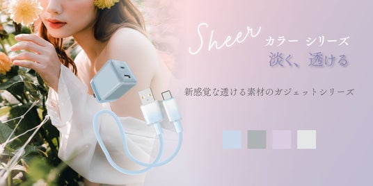 「シア―カラー」シリーズとは、女性に人気のニュアンスカラーに、白く淡いベールのような透け感のある素材を組み合わせ、やわらかな印象に仕上げた充電器とUSBケーブルのシリーズです。