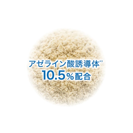 ・POINT 1 史上初*¹! アゼライン酸誘導体*² 10.5% 配合お肌への負担を考慮し、高濃度でも刺激*³が少ないとされているアゼライン酸誘導体*²を採用。アゼライン誘導体*²を初めて*¹メイクアップアイテムに配合することで、皮脂崩れ・毛穴落ち・テカリといった年齢や肌質を問わず多くの方が抱える夏のメイク中の肌悩みにアプローチします。