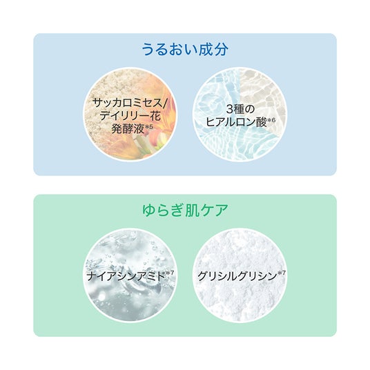 *⁶ 保湿成分:ヒアルロン酸Na、加水分解ヒアルロン酸、アセチルヒアルロン酸Na